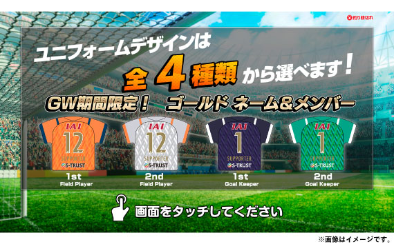 ユニフォームデザインは1st(フィールドプレイヤー/GK)、2nd(フィールドプレイヤー/GK)の4種類からお選びいただけます。