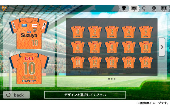 ユニフォームデザインと好きな選手の背番号・ネーム、もしくはオリジナルの背番号・ネームを組み合わせて、出てくるキットを組み合わせれば完成!