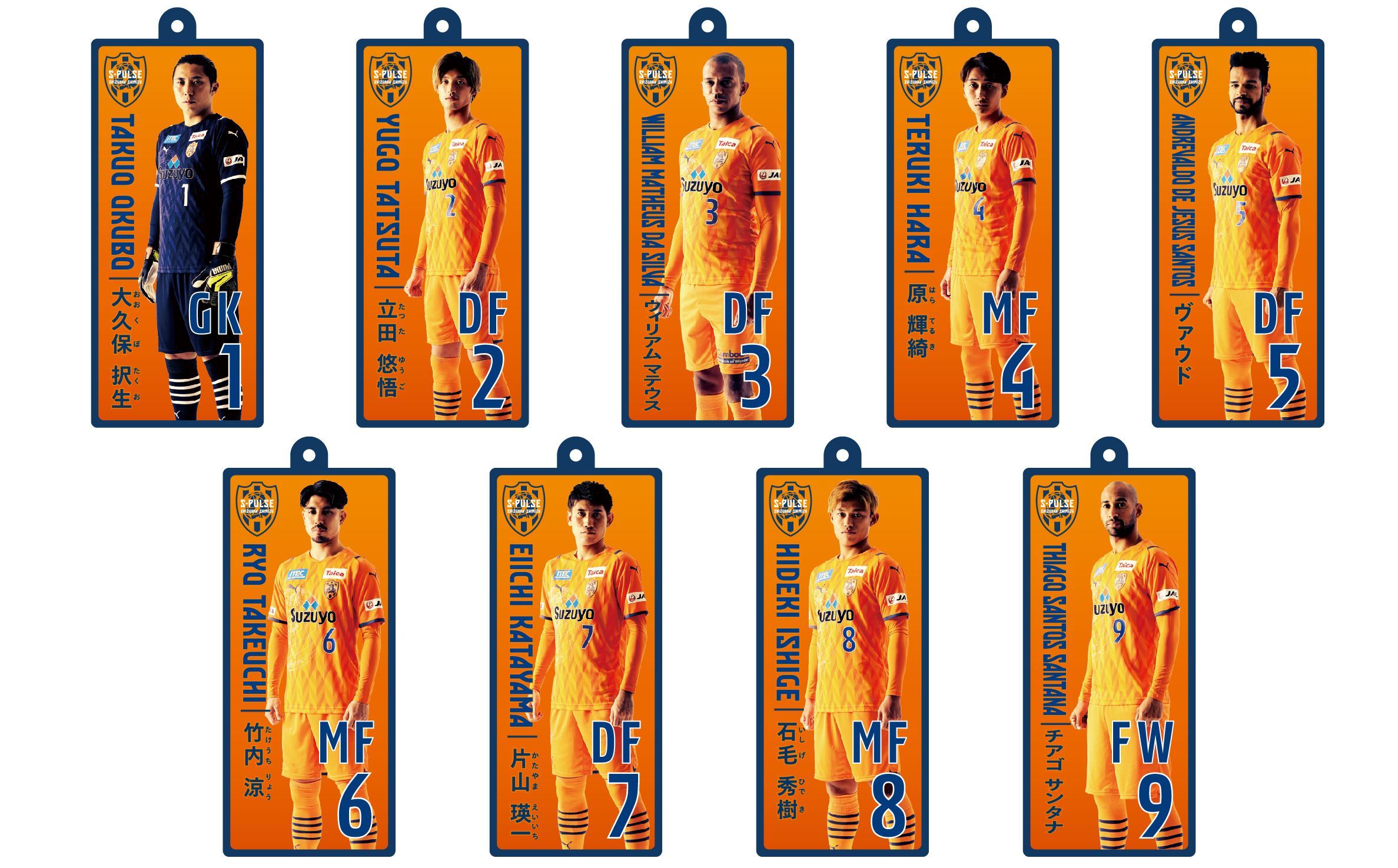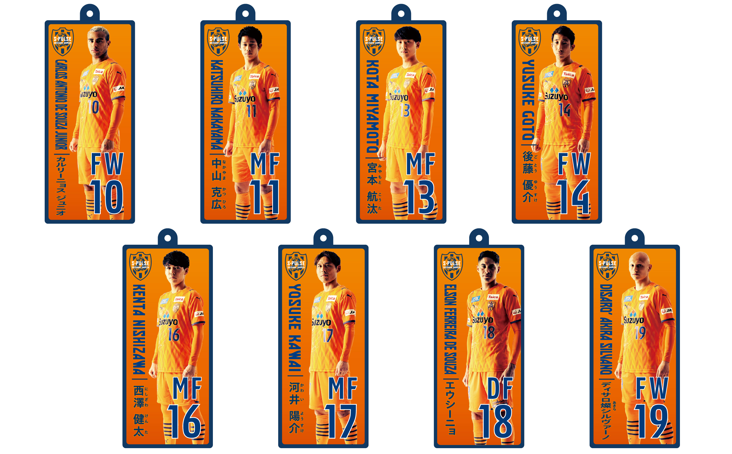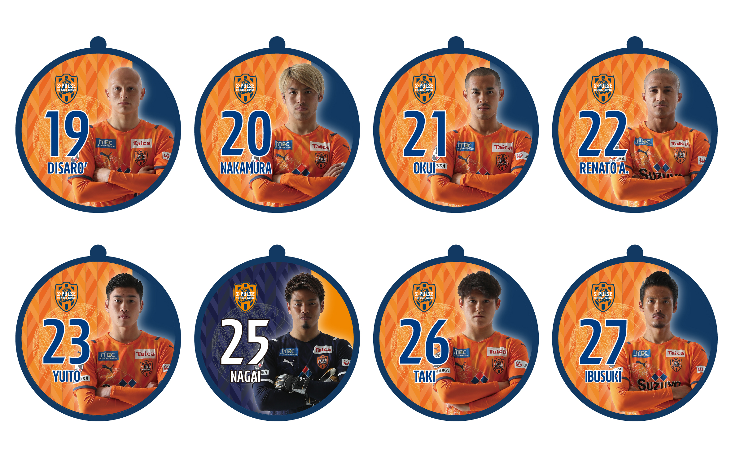 全19種(No.2 立田、No.4 原、No.5 ヴァウド、No.6 竹内、No.7 片山、No.9 チアゴ サンタナ、No.10 カルリーニョス、No.11 中山、No.14 後藤、No.16 西澤、No.17 河井、No.18 エウシーニョ、No.19 ディサロ、No.20 中村、No.22 ヘナト、No.23 鈴木唯人、No.30 金子、No.37 権田、No.50 鈴木義宜)