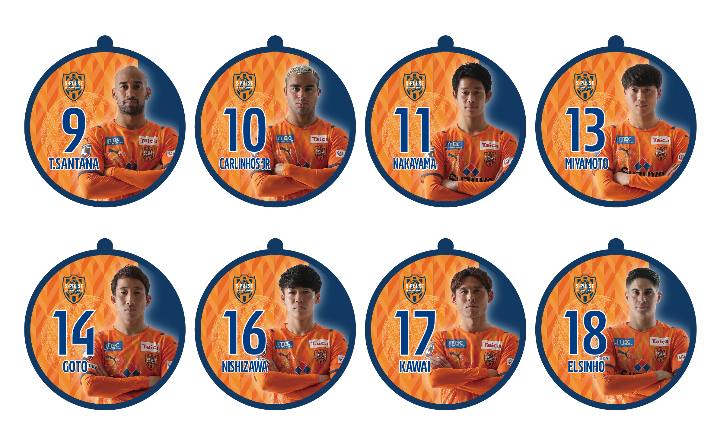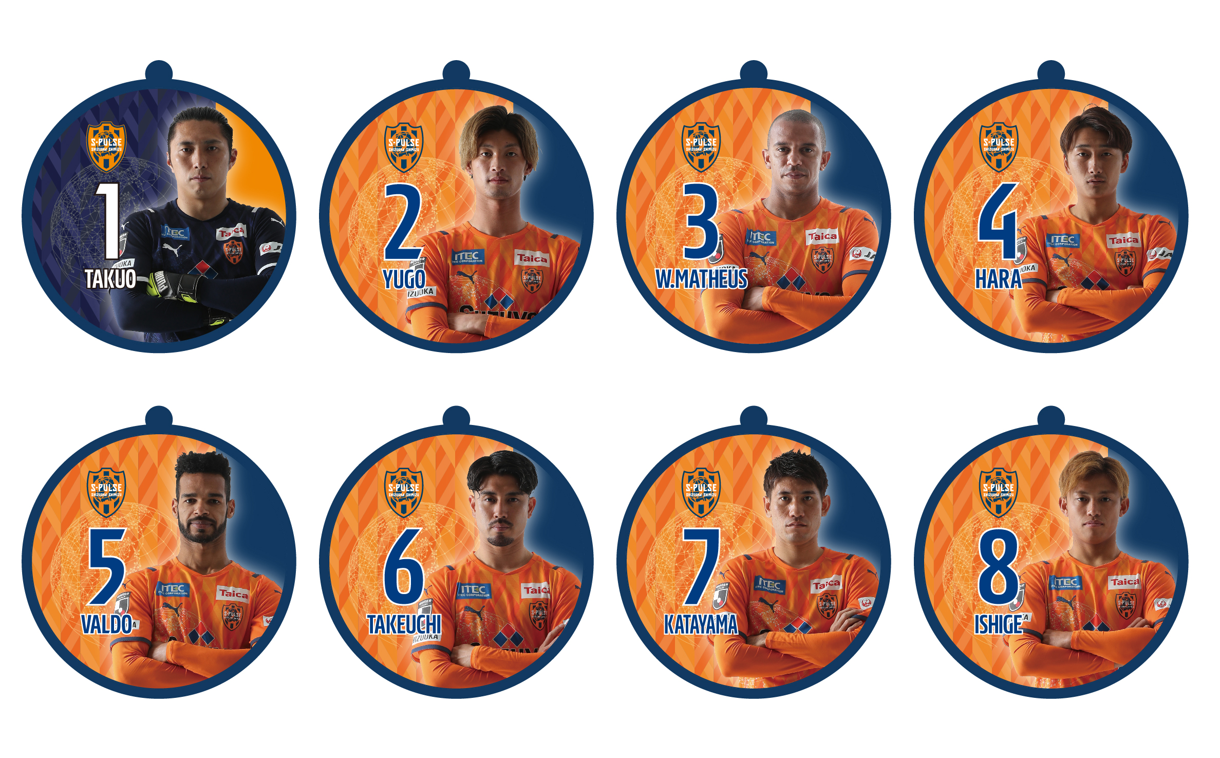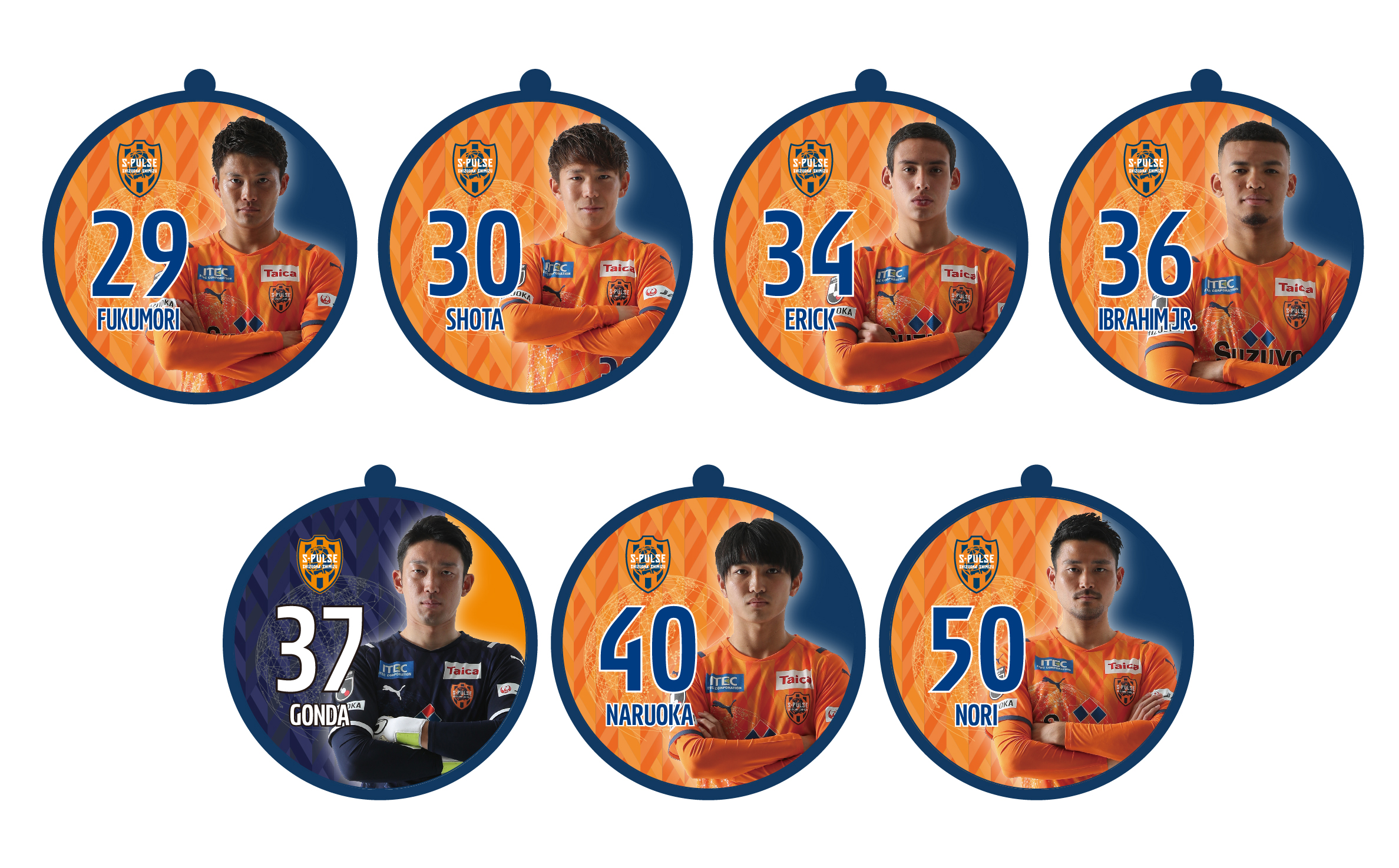 全19種(No.2 立田、No.4 原、No.5 ヴァウド、No.6 竹内、No.7 片山、No.9 チアゴ サンタナ、No.10 カルリーニョス、No.11 中山、No.14 後藤、No.16 西澤、No.17 河井、No.18 エウシーニョ、No.19 ディサロ、No.20 中村、No.22 ヘナト、No.23 鈴木唯人、No.30 金子、No.37 権田、No.50 鈴木義宜)