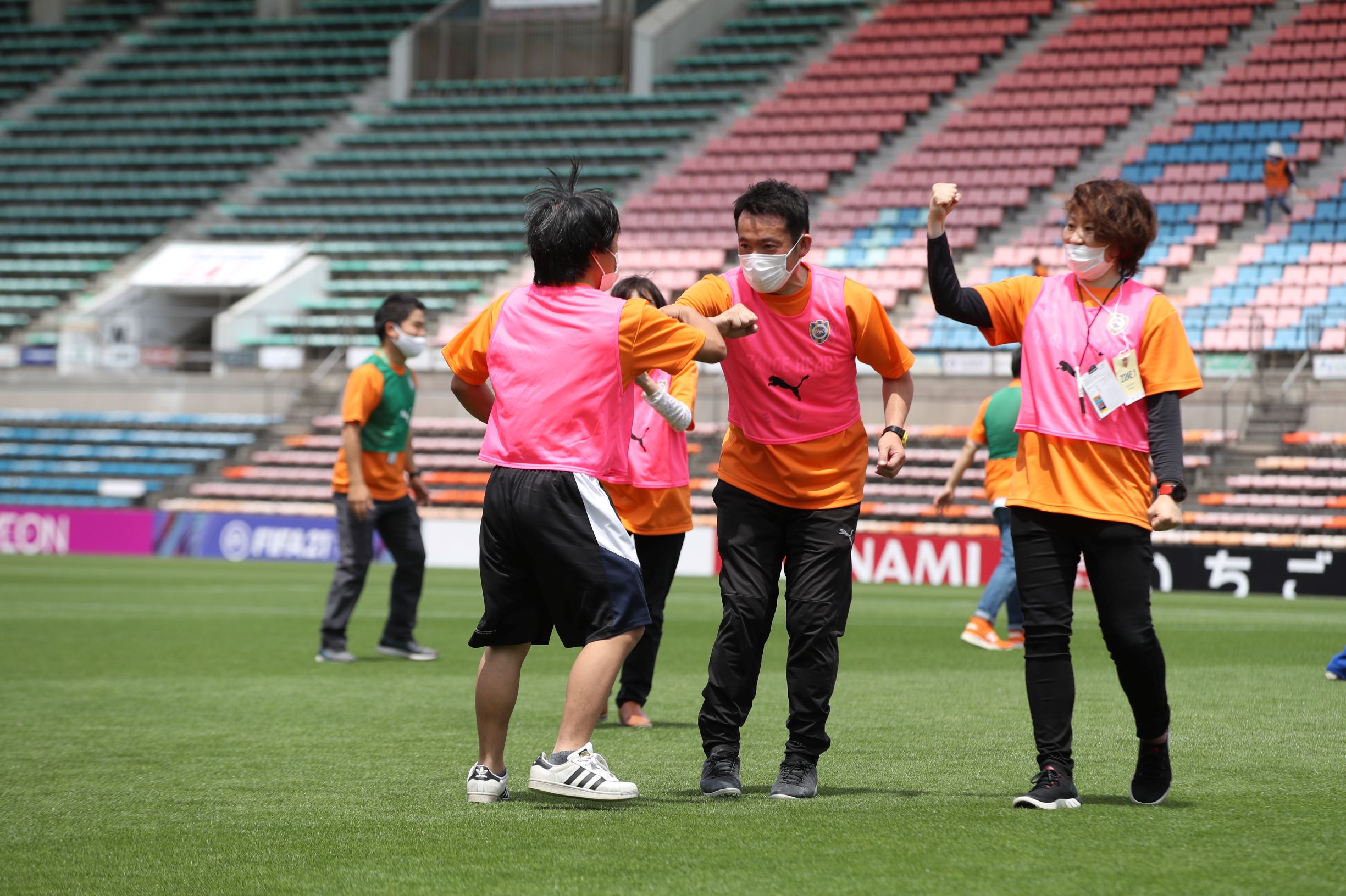 -試合観戦では、参加者もスタッフも、一体となり応援してくれていました。試合が行われるピッチでサッカー教室を行い、就労体験でお客様をお迎えし、最後に試合観戦で、より一層エスパルスへの想いが高まり、応援に力が入ったのではないでしょうか。疲れていても「もう少し見たい!」と言ってくれていたことが嬉しかったです。-
