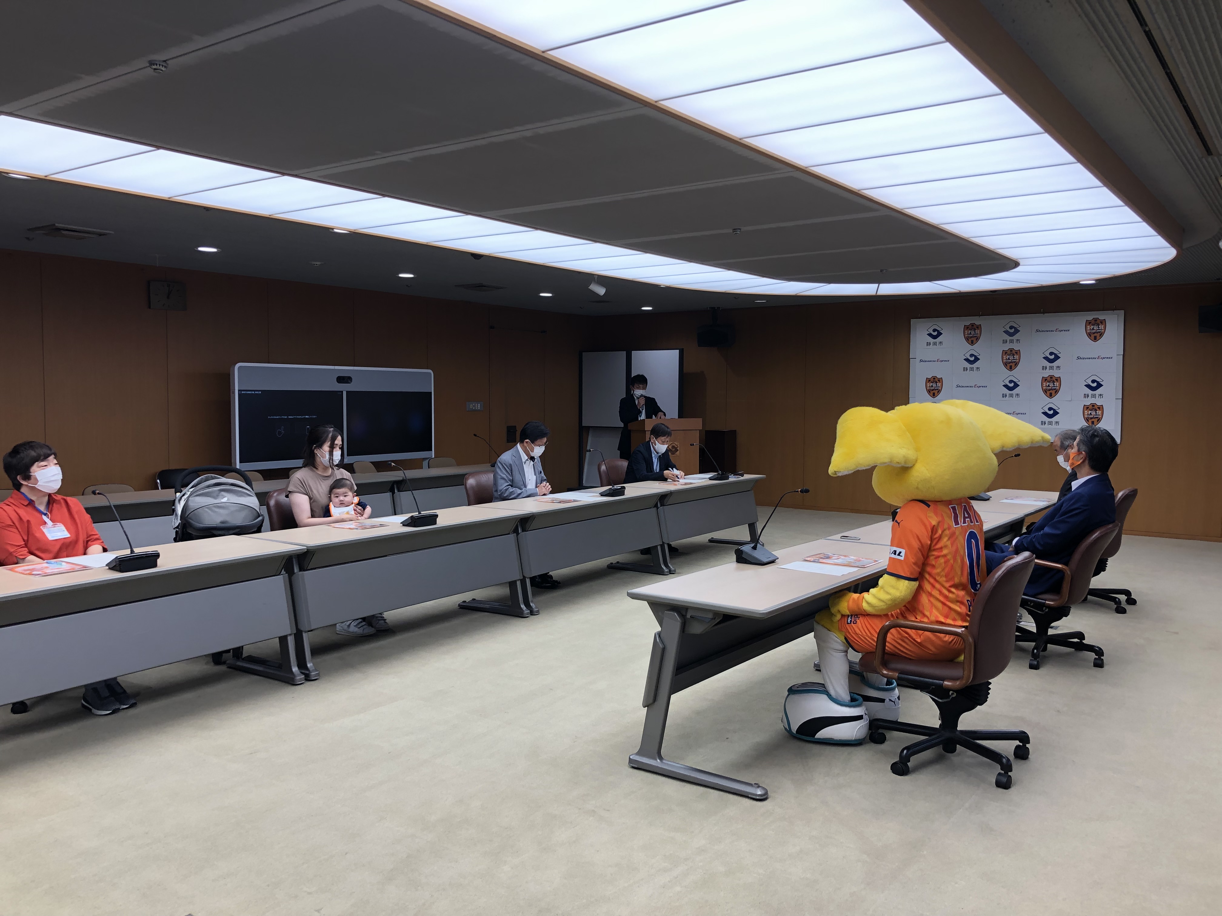 今年度は、6月21日(㈪)、静岡市役所静岡庁舎にて贈呈式を行いました。贈呈式には、田辺信宏静岡市長、当事業にご賛同いただきました、しずてつジャストライン株式会社 代表取締役社長 三浦孝文様、株式会社エスパルス 代表取締役社長 山室晋也、オフィシャルマスコットパルちゃん、市民代表志村真梨子様、律橙ちゃん親子にご出席いただきました。