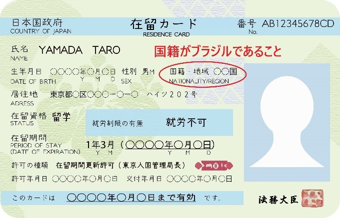 ※ O solicitante deverá ter a “nacionalidade brasileira no zairyu card (carteira de residência)”.