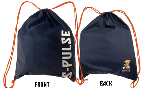 エスパルスグッズらしく、紐はオレンジに、ロゴとPULCLEデザインを表裏に配置することで、リバーシブルデザインに。