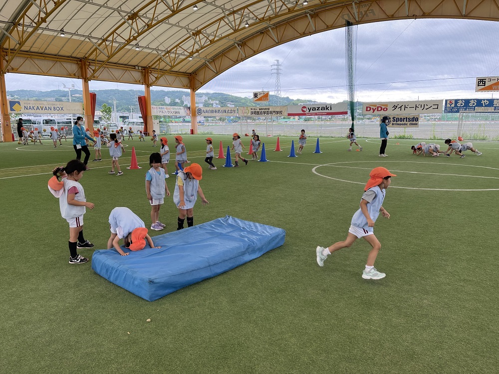 活動の始めから子どもたちは元気いっぱいに動いていました。またコーチの話をよく聞いたり、やり方を目で見て難しいことにもチャレンジしていました。