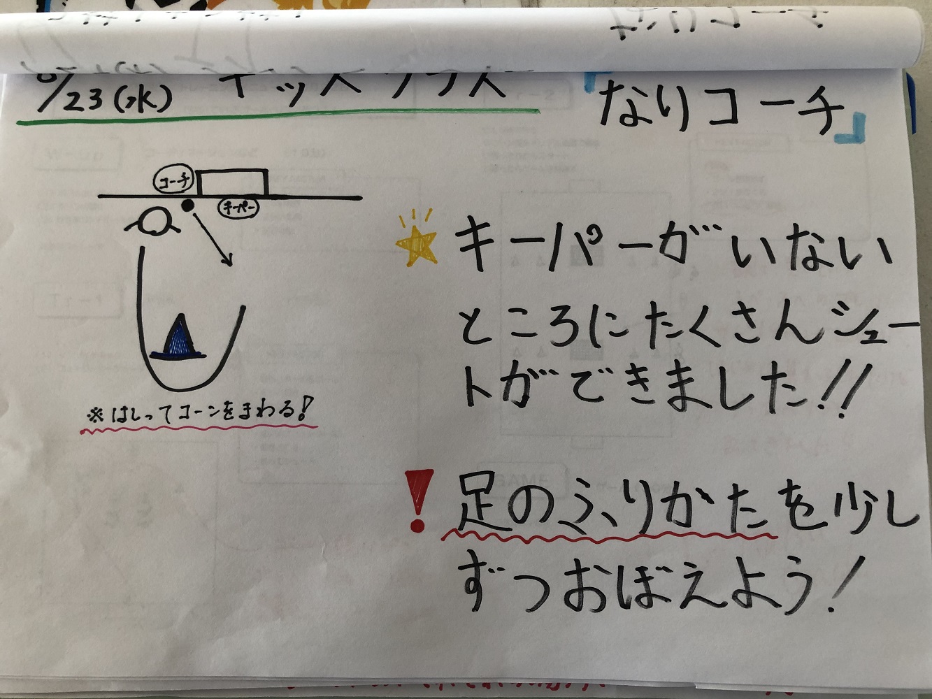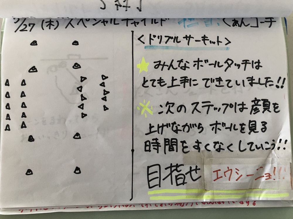 園での様子が良く分かり、毎日チェックするのが楽しみなのです。それをサッカースクールで応用できないかなぁと、、、と考え、実際にやってみる事になりました!