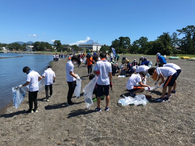 天候に恵まれ、エスパルスからもジュニアユースの選手とスタッフ約30名が参加し、地域の方々や海に関わる各団体を中心に340名程度の方と一緒に清掃活動を行い、三保の内浜のクリーンアップ作戦に成功しました。