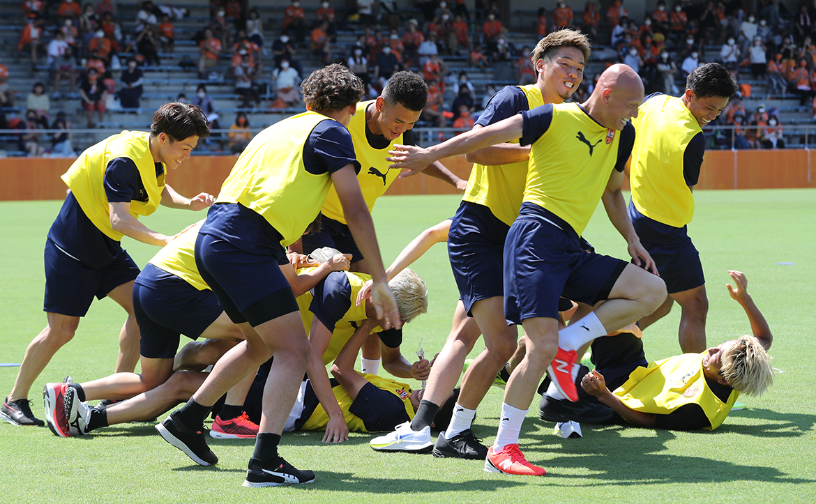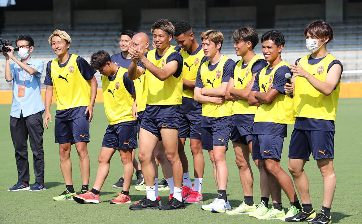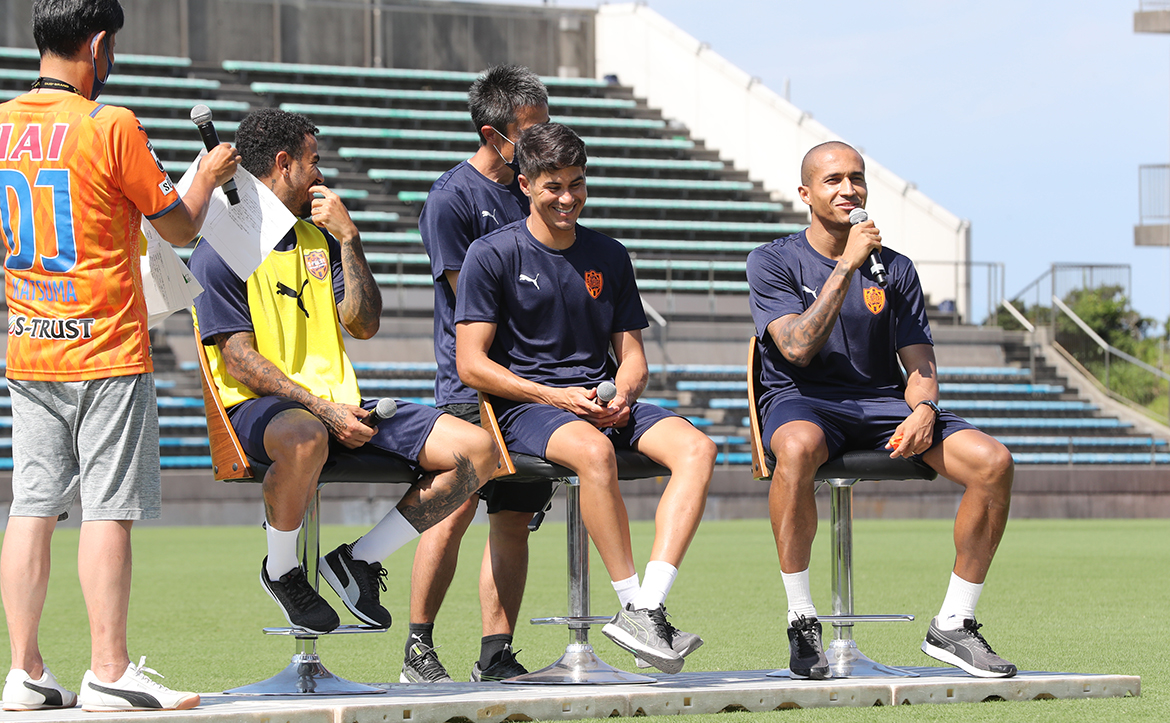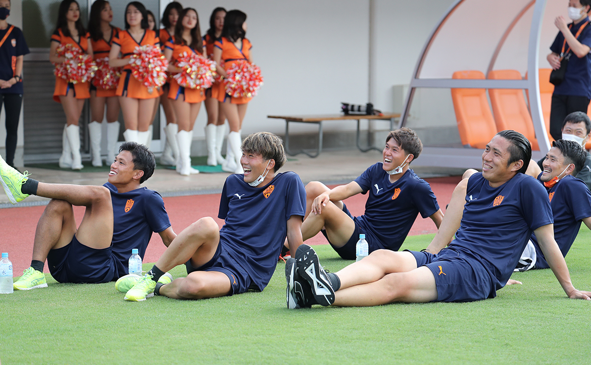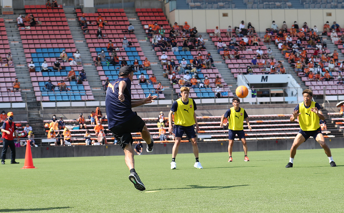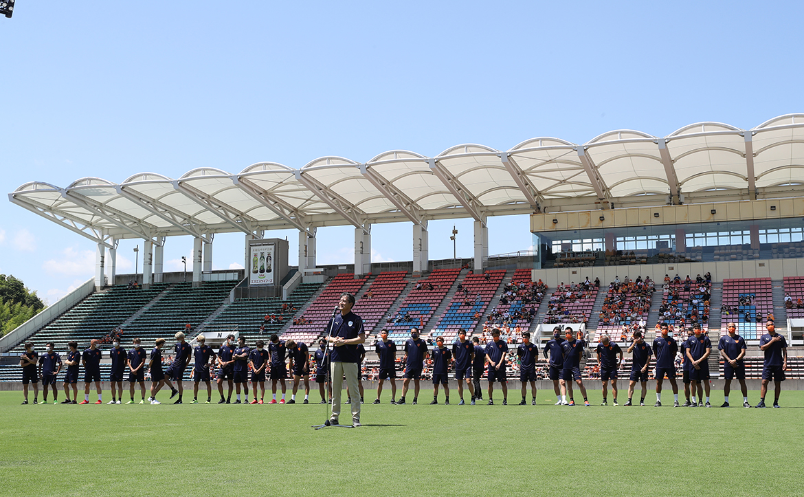 まずは山室晋也社長の挨拶。「皆さん、日頃エスパルスを応援いただき誠にありがとうございます。今日はこの炎天下のなか、「S-PULSE SUPPORTERS THANKSDAY 2021」に多数ご来場いただき本当にありがとうございます。水分をこまめにとっていただき、体調管理をしっかりして楽しんでください。午前中から色々な催し物がありましたが、午後からは選手に参加してもらって盛り上げていきたいと思います。今回、この日のために選手たちは何回もミーティングを行い、リーグ戦の前のミーティングよりも熱心なんじゃないかと思えるくらい、熱の入ったノリノリの企画が満載になっていますので、日頃見られないピッチ上での笑顔を楽しんでいただければと思います。今日はリラックスモードで楽しみたいと思いますが、必ず後半戦は勝ち抜きたいと思いますので、ぜひ応援をよろしくお願いします。今日はよろしくお願いします」