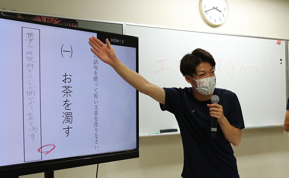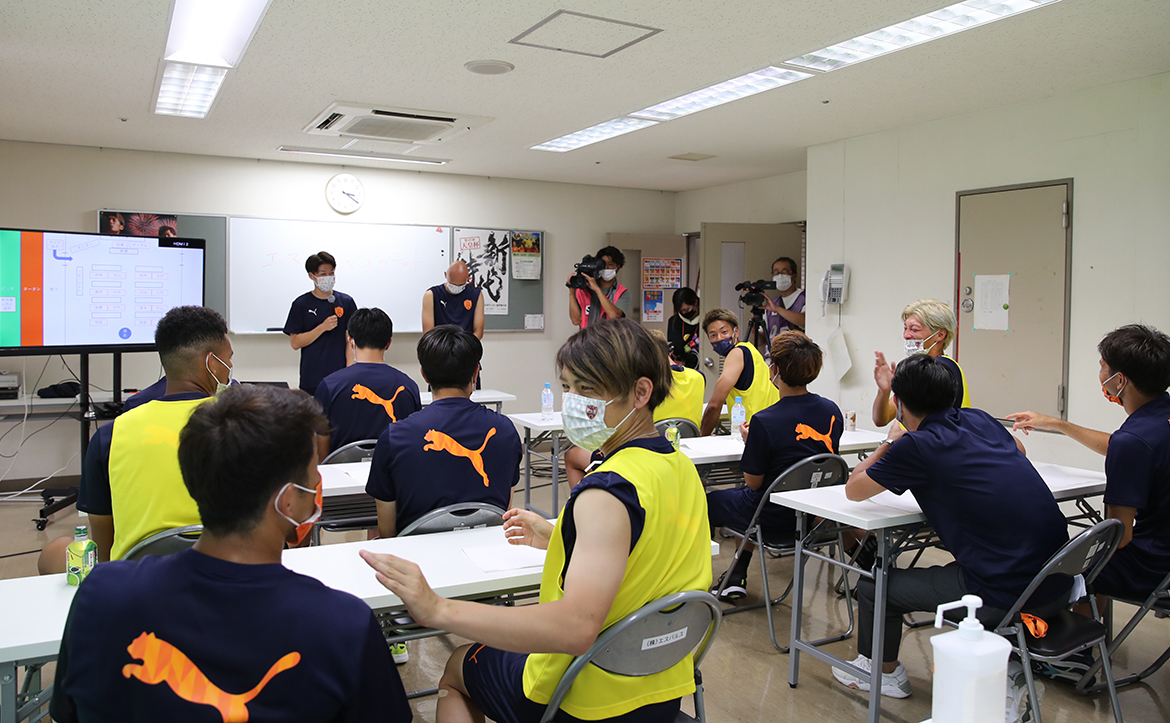 その後、エスパルス公式YouTubeチャンネルで一部公開されていた「学力テスト」の結果が発表されました。珍回答が続出し、会場が大きく笑いに包まれるなか、1位は片山瑛一選手と同点で西澤選手。3位は河井選手となりました。そして、下位3選手の発表。ワースト3位から原選手、後藤選手と続き、最も点数が低かったのは永井選手という結果になりました。