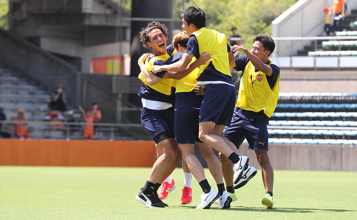 結果ポイントで並び、急遽サドンデスの「バー当て対決」で勝敗を決めることに。「03」は鈴木義宜選手が1発目で成功。「清水ヤングボーイズ」の石毛選手は決めることができず、劇的な展開で「03」の勝利が決まりました。