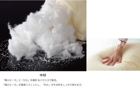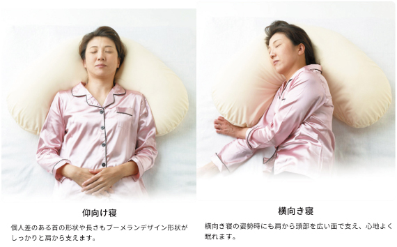 介護・福祉用品「αPLA(アルファプラ)」シリーズを通じて得たノウハウを、健康志向の皆様にお届けする取り組みから開発した快眠枕です。ブーメラン形状により肩から頭部まで広い面でしっかりと支え、仰向き寝と横向き寝に対応しています。中材に使用している「極小ビーズ」と「わた」で、身体にフィットし、その形を保つ事が出来ます。エスパルスの選手達も愛用中です。