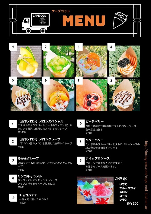 昨年10月にオープンしたクレープのキッチンカー【CAPE COD】です。