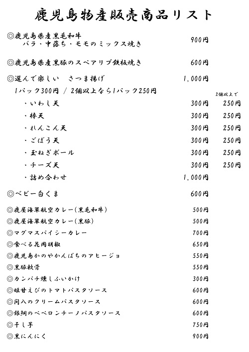 『さつま揚げ』『白くま』など鹿児島の特産品を販売いたします。