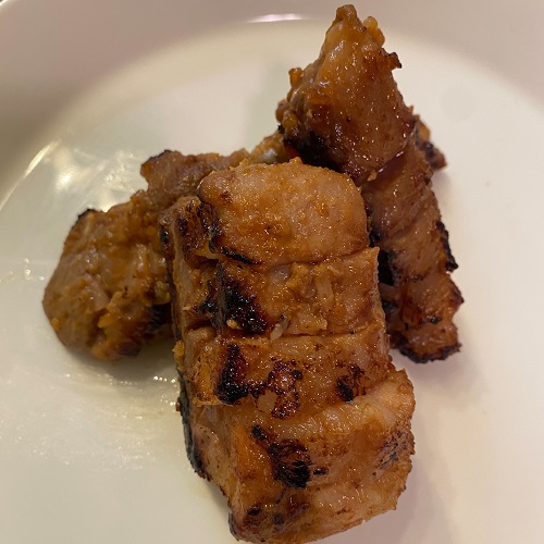 黒豚の特長は「やわらかい」「旨味が多くジューシー」「脂の融点が低くもたれない」肉の質にこだわった鹿児島県産黒豚を堪能してください。今回は相性の良い味噌ダレに漬け込んだスペアリブをその場で鉄板で焼き上げます。