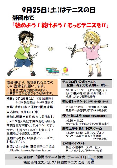 お申込み、イベント内容詳細については、静岡市テニス協会ホームページをご覧ください。