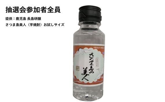 また、こちらも参加者全員に鹿児島デー開催記念として「長島研醸さつま島美人(芋焼酎)」のお試しボトルもプレゼント!