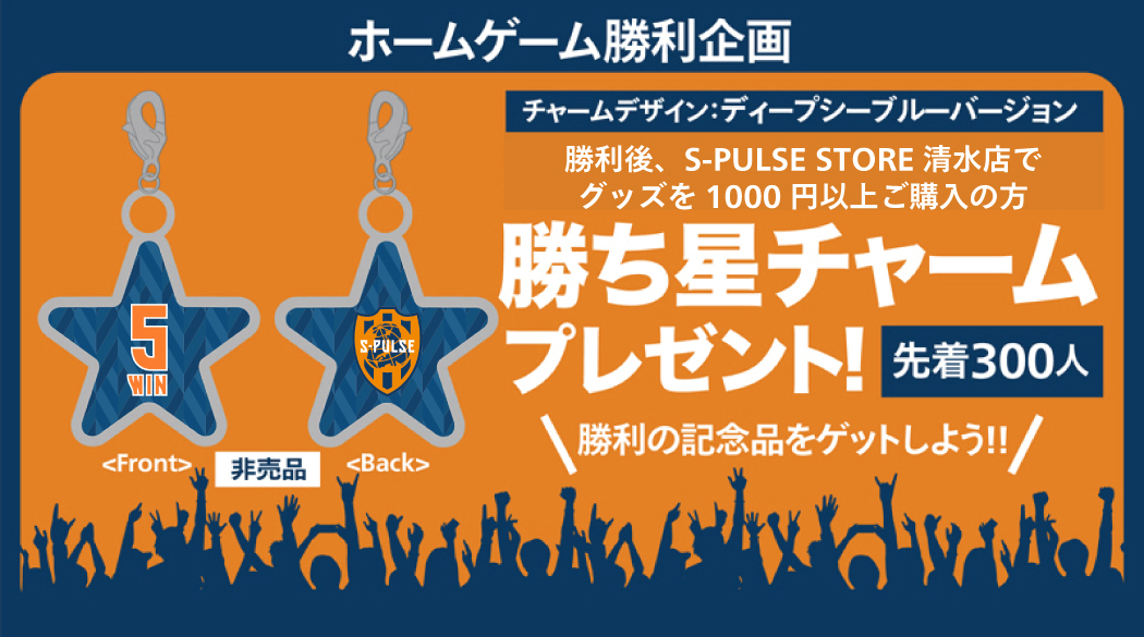 ホームゲームで勝利した場合、翌日の9月25日(土)にS-PULSE STOREにて、商品を購入された方に「勝ち星チャーム(非売品)」をプレゼントします。