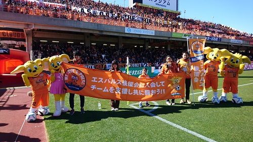 エスパルス後援会では、ホームゲームのハーフタイムに「エスパルス後援会バナー」を持って、ピッチを1周していただき会員拡大につなげる活動をおこなっております。