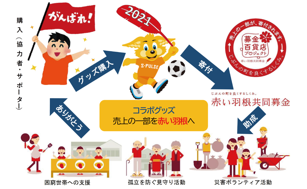 清水エスパルス×"赤い羽根"グッズは「寄付つき商品」として、商品代金の一部(商品1点あたり200円予定)を募金させていただきます。
