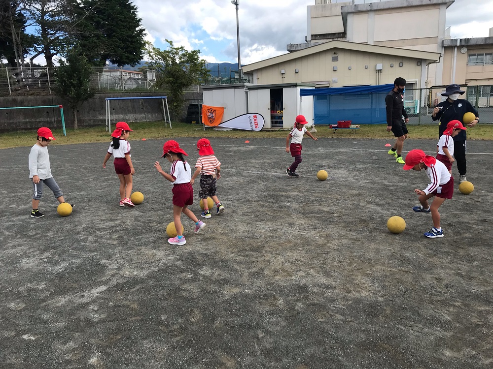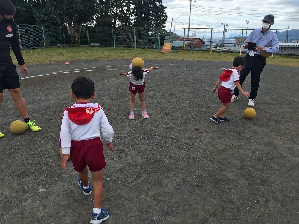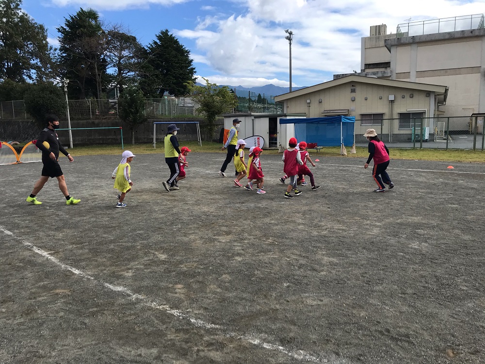エスパルスアカデミーは10月18日(月)、富士市の大淵幼稚園を対象にスポーツ巡回教室を実施しました。