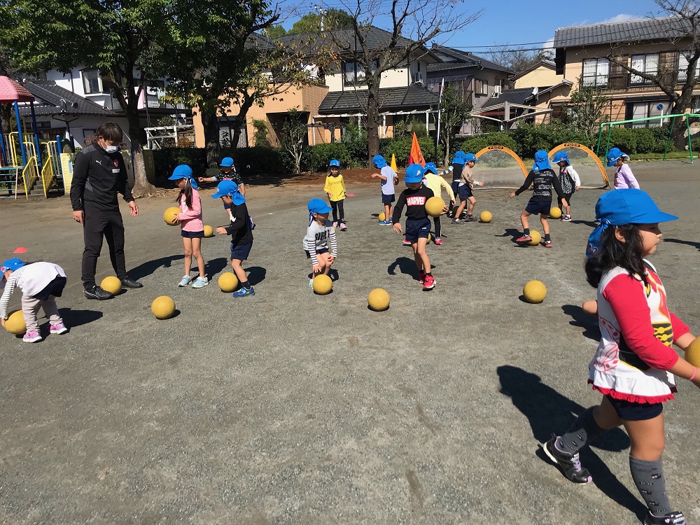 エスパルスアカデミーは10月20日(水)、富士市の岩松幼稚園を対象にスポーツ巡回教室を実施しました。