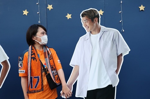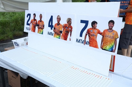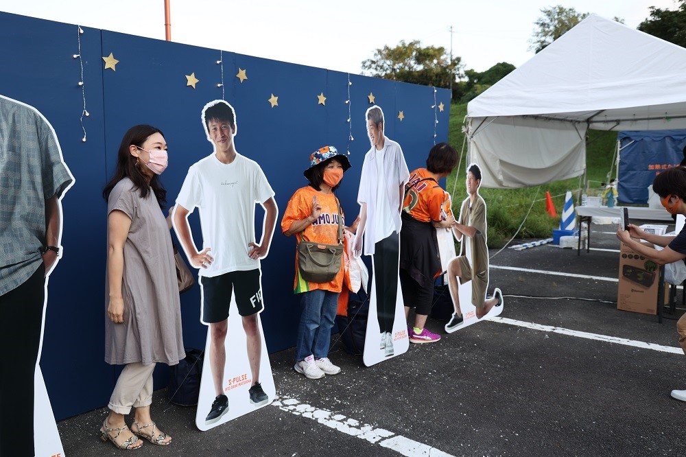 本件は、サッカーやエスパルスに詳しくないお客様にも試合を楽しんでいただける企画の一つとして、事前投票による上位5選手の等身大パネルを展示し、撮影を楽しんでいただくとともに、その場でお一人につき一票、投票していただいたものです。