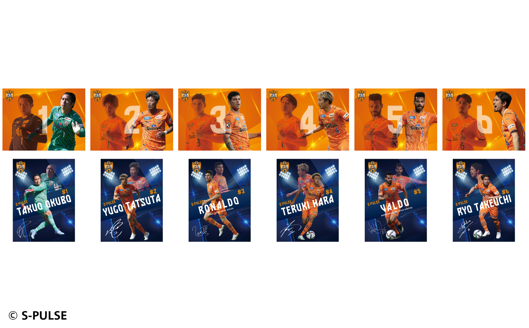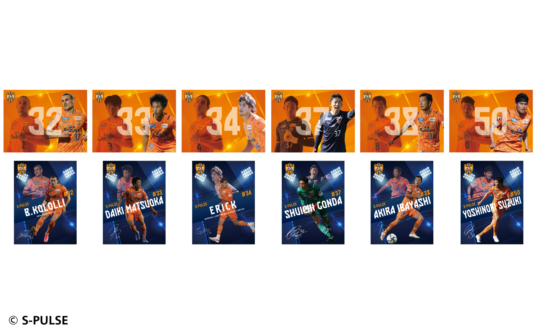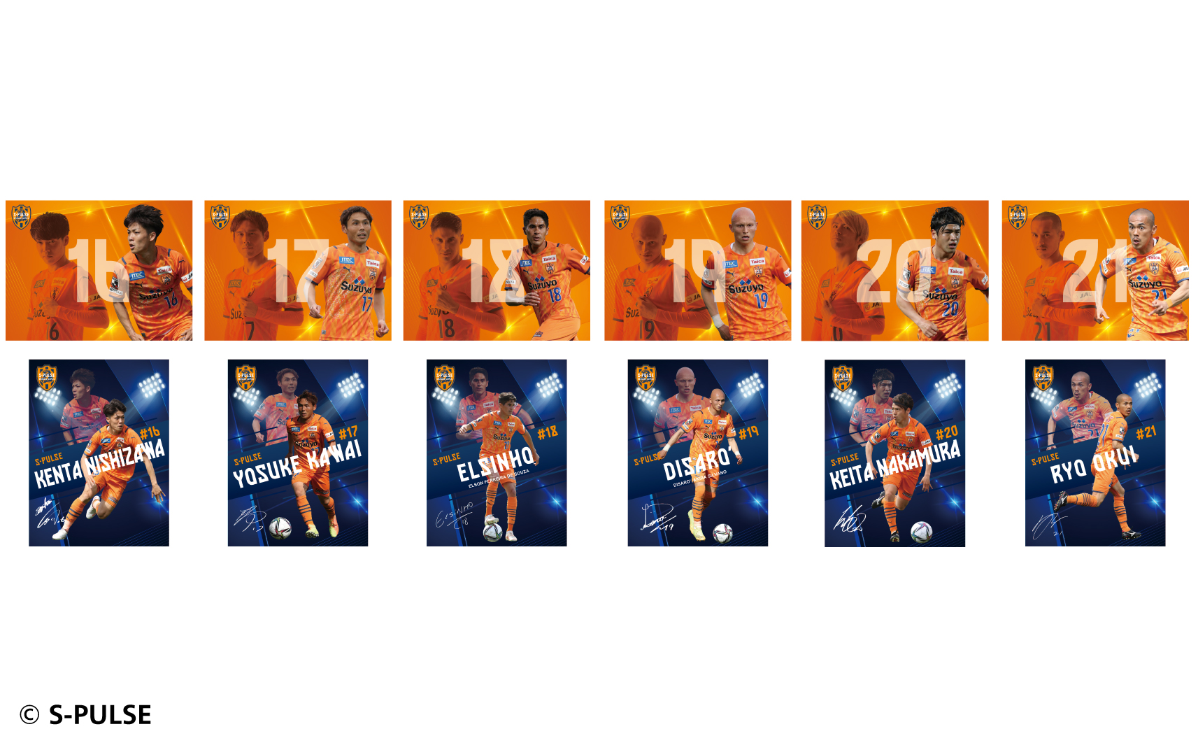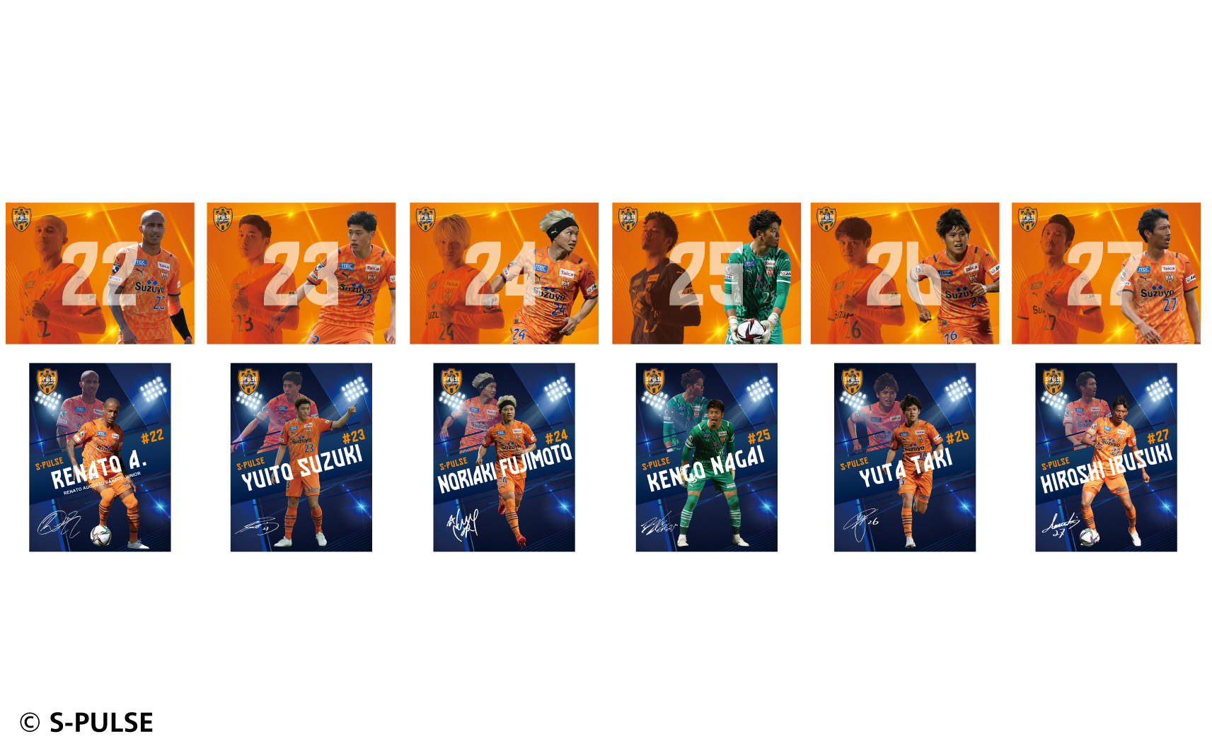 #1大久保,#2立田,#3ホナウド,#4原,#5ヴァウド,#6竹内,#7片山,#9チアゴ,#10カルリーニョス,#11中山,#13宮本,#14後藤,#16西澤,#17河井,#18エウシーニョ,#19ディサロ,#20中村,#21奥井,#22ヘナト,#23鈴木唯人,#24藤本,#25永井,#26滝,#27指宿,#32コロリ,#33松岡,#34エリック,#37権田,#38井林,#50鈴木義宣,#0パルちゃん,#12こパルちゃん,#77ピカル,エンブレムデザイン