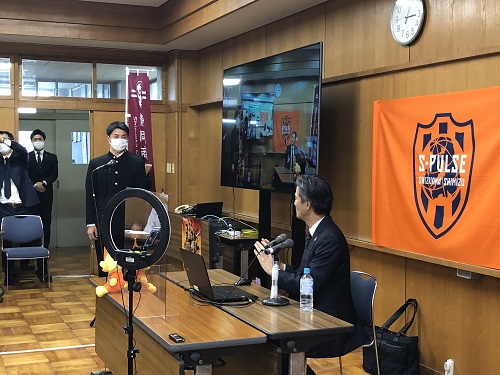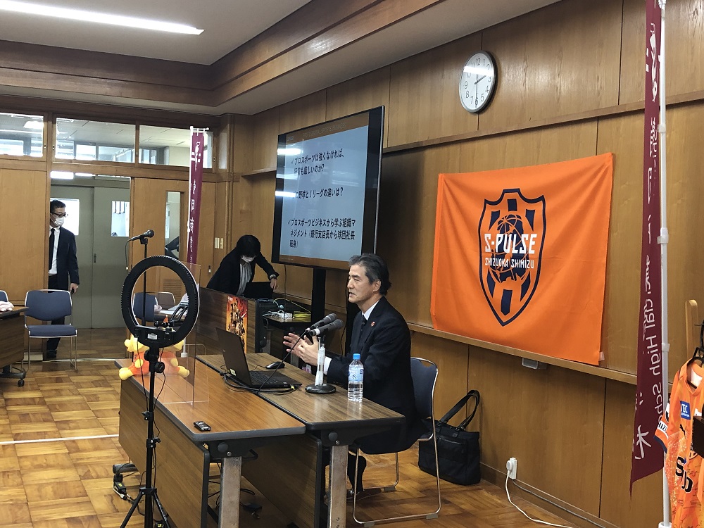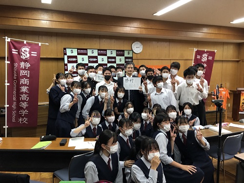 10月29日(金)に、静岡県立静岡商業高校における「商業科 課題研究 出前講座」において、全校生徒及び職員を対象にエスパルスの山室晋也代表取締役社長が「プロ野球からJリーグに転身 今後のプロスポーツビジネスの展望」をテーマに講演を行いました。