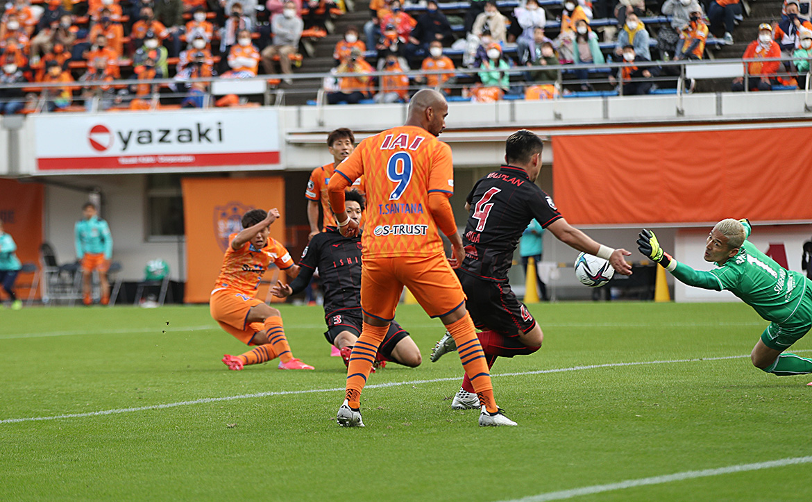 The game started well for S-Pulse when in the 17th minute Santana exploited a scramble inside the box engendered by Nishizawa’s free kick 25 meters away from goal.