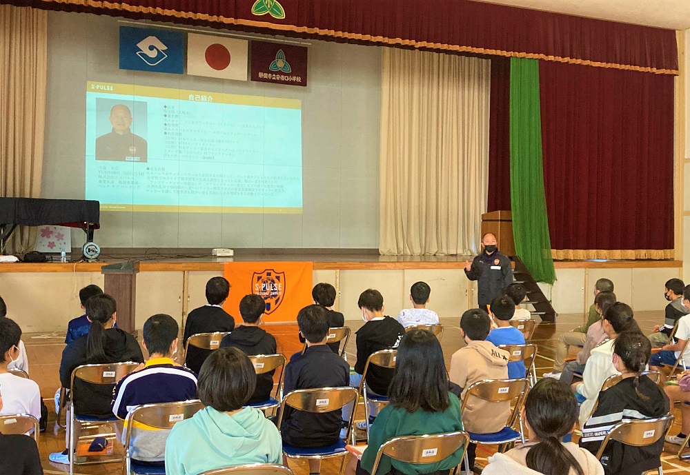 11月11日(木)、エスパルス教育事業部の今泉幸広ヘッドオブコーチングが、静岡市立安倍口小学校にて行われた「職業講話」の授業へ講師として参加しました。