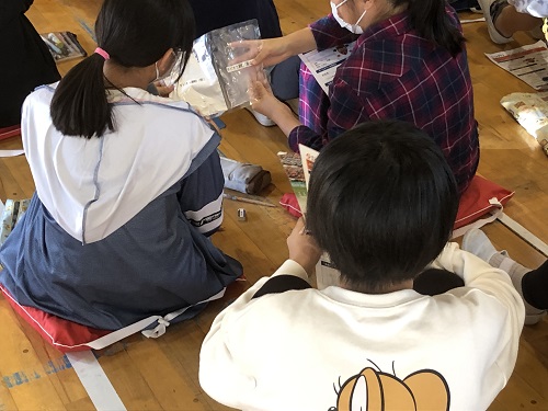 澱粉がどのようなものか、どのような食品に使われているかなど問いかけながら進む授業内容に、児童の驚きの声や納得の表情がうかがえました。また、普段直接触ることのない、澱粉の形状の違いに興味深い様子で触れていました。