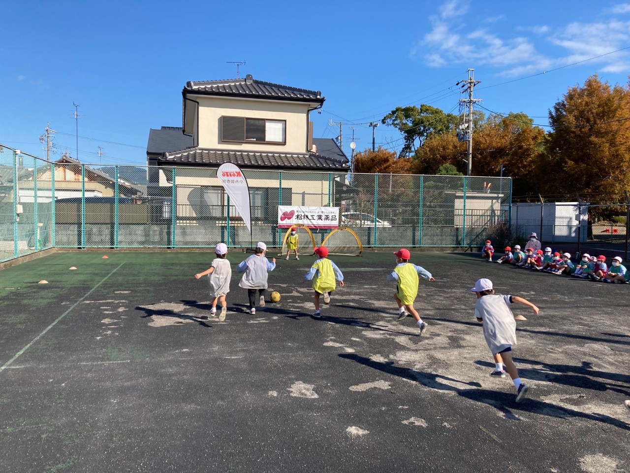 最初の話を聞くところからコーチの目を見てよく聞くことができていました。最後の試合では、最後まで諦めないでボールをたくさん追いかける姿が見られるそんな教室となりました。