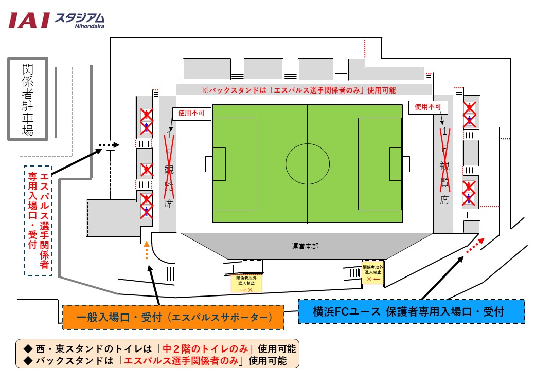 ・施設内では各チーム個別の専用入場ゲートよりスタンドへお上がりください。
