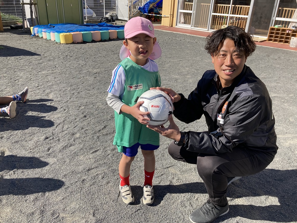 天気の良い中元気いっぱい活動しました。よく話を聞きチャレンジをしできなかったことができるようになりました。最後のゲームまで元気にプレーしました。「またやろうね!」「もっとサッカーしたい!」との声も聞けました。