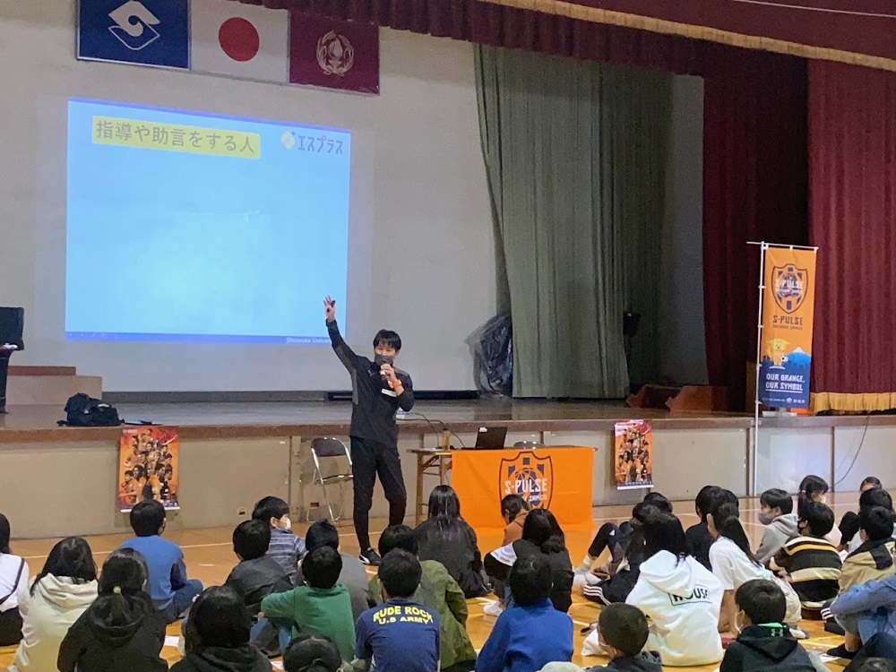 11月25日(木) 静岡市立西豊田小学校にて、エスパルスユースコーチ久保山由清を講師に『エスプラス』元プロサッカー選手編キャリア教育」を実施しました。