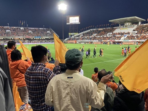 就労体験後は、スタンドに移動し参加者の皆さんで一緒に試合を観戦していただきました。Orange Heart Projectとして3回目の実施で初勝利を飾ることができ、参加者は選手の場内一周までスタンドに残り、周りのファン・サポーターの皆さんと共に喜びを分かち合いました。