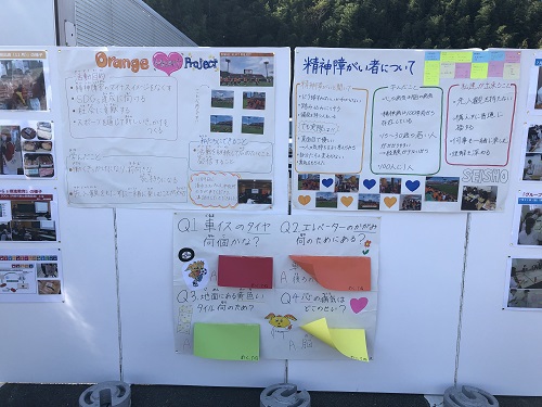 本プロジェクトの目的は、こころの病と向き合う方の次の一歩をあと押しすること、そして病に対する周囲の理解を促していくことです。今回は活動を支えるパルちゃんクラブの皆さんに、静岡市精神保健福祉課よりこころの病についてご説明いただきました。また、事前に静岡商業高校の生徒の皆さんにクラブと静岡市よりOrange Heart Projectの紹介と「精神障がいについて」の授業を行い、授業で学んだことを当日スタジアム場外のブースで発表展示いただきました。