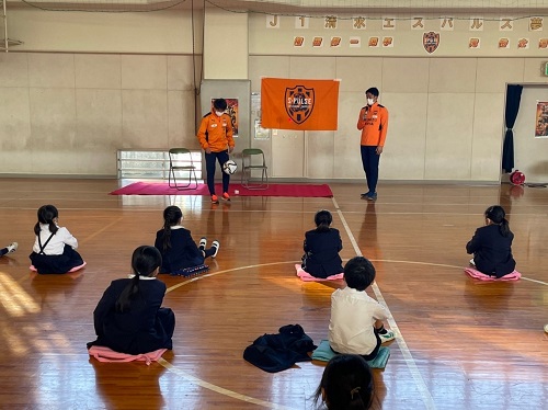 12月9日(木)、清水エスパルスの権田修一選手・滝裕太選手が熱海市立多賀小学校と桃山小学校を訪問しました。