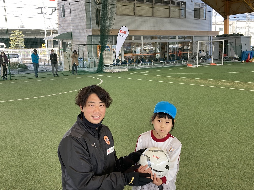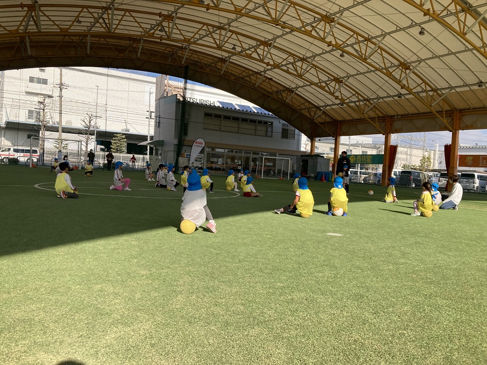 天気の良い中元気に活動しました、一生懸命チャレンジしガッツポーズや喜ぶ様子がたくさんみられました。「広くて楽しかった!」「サッカー好きになった」とこども達も大満足でした。