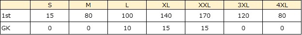 ※GKのS、M、3XL、4XLサイズは売り切れの為、2次予約では販売が御座いません。