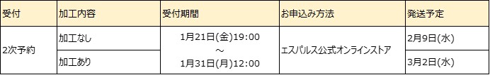 ※他の予約商品と同時にご注文した場合、納期が一番遅い商品と合わせた一括納品となりますのでご注意下さい。