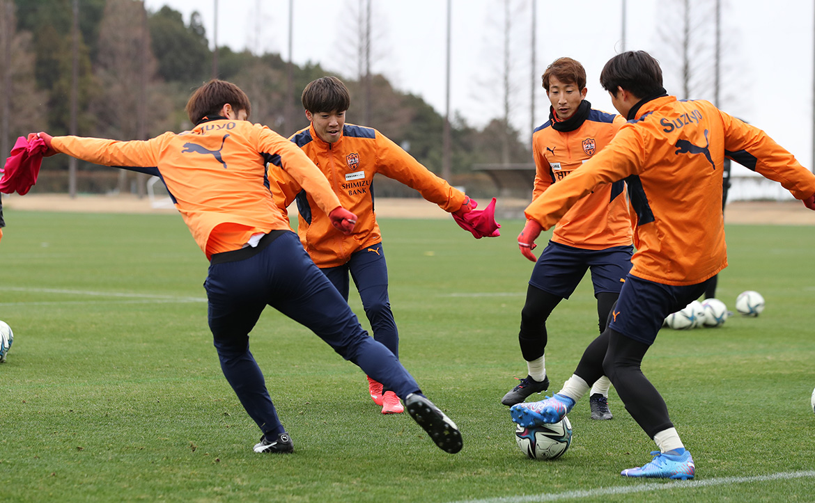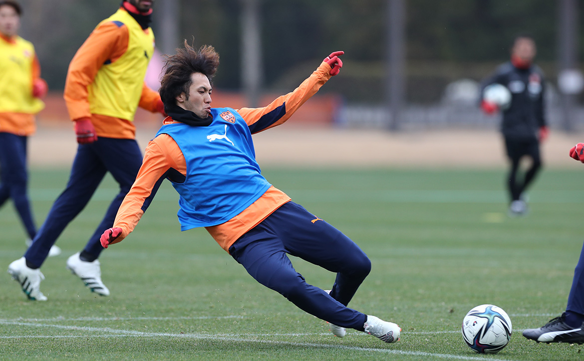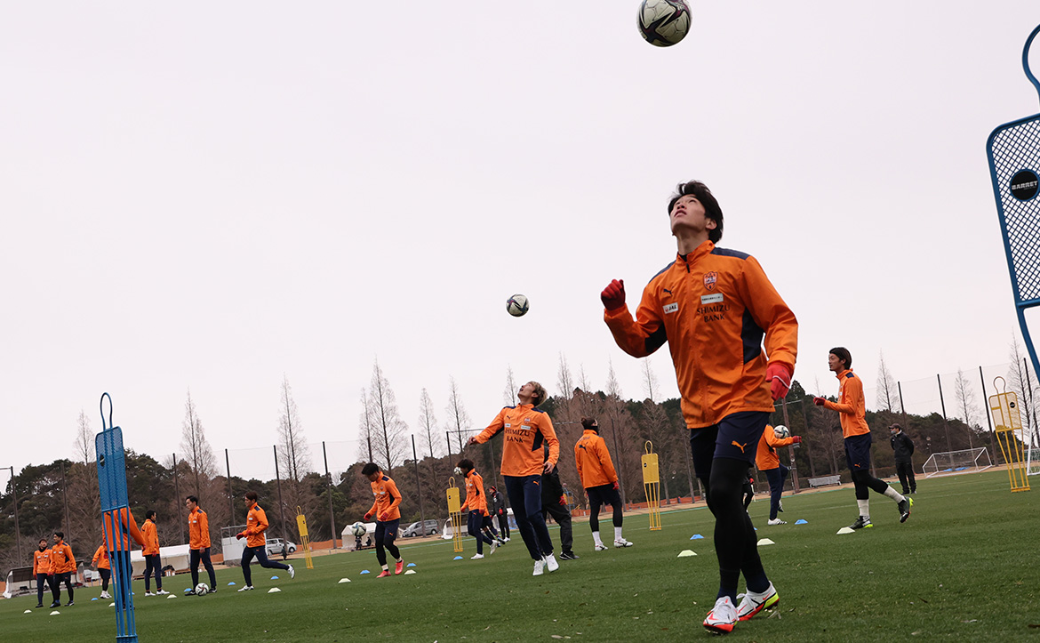 キャンプ7日目、今日はミーティングからのスタートになった。この日のふれあいスポーツランドは曇り空で、前日よりもさらに寒さが厳しい。ウォーミングアップのスタートは、この天候のように選手たちの表情はスッキリしていなかったが、いつものように鳥かごで選手たちは活気を取り戻した。
