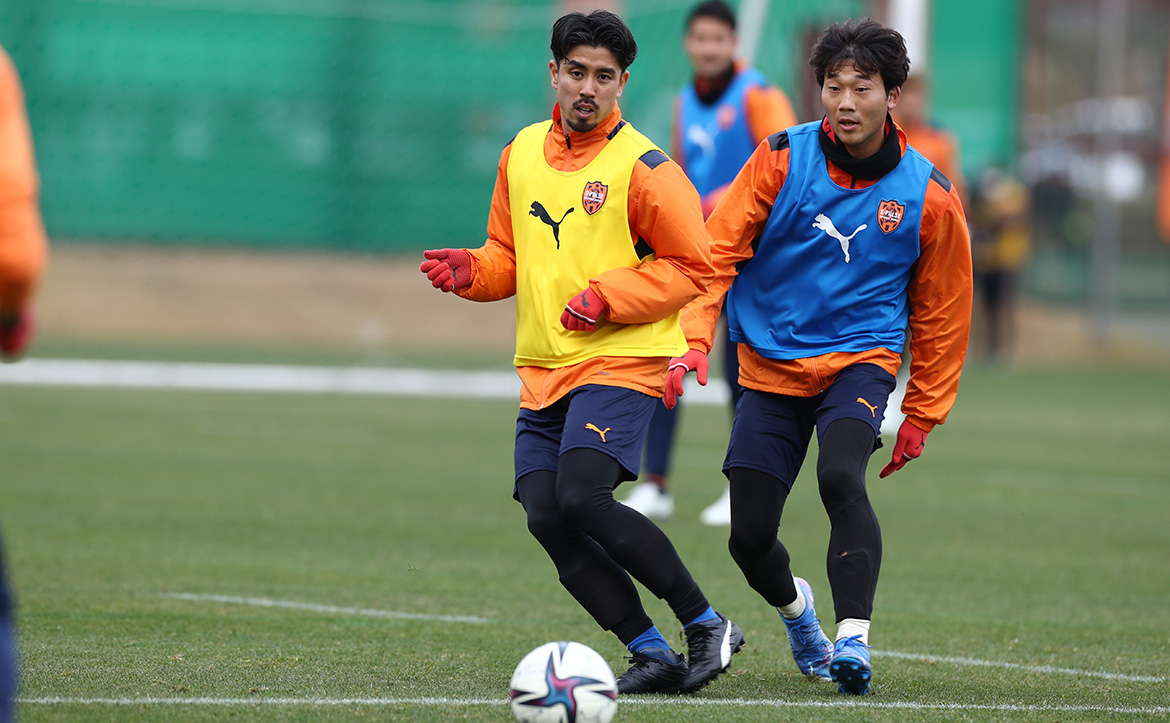 このあと、攻撃と守備に分かれての練習になった。攻撃側は、ポストプレーから様々なパターンでシュート練習。ワンツーや3人目の動きを使ってゴールを狙った。シュート練習が終わっても、髙橋大悟やコロリなどは、自主的にセットプレーの練習を行うなど、明日の試合に備えていた。