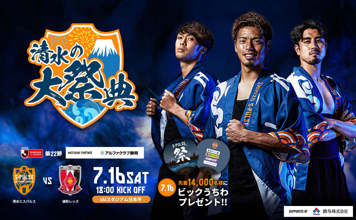 7月16日(土)に行われる2022明治安田生命J1リーグ第22節 浦和レッズ戦(15:30開場/18:00キックオフ@IAIスタジアム日本平)についてお知らせいたします。なお、各イベント情報は随時更新いたします。