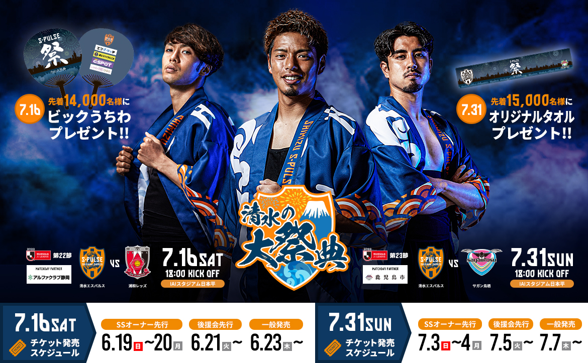 7/16 (土) 浦和戦、7/31 (日) 鳥栖戦の2試合は『清水の大祭典』を実施!アイスタで盛り上がって真夏の暑さを吹き飛ばそう!!