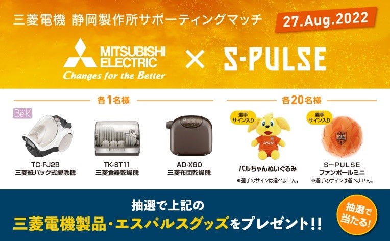 三菱電機 静岡製作所サポーティングマッチ開催を記念して、三菱電機からサポーターの皆様に素敵なプレゼント!