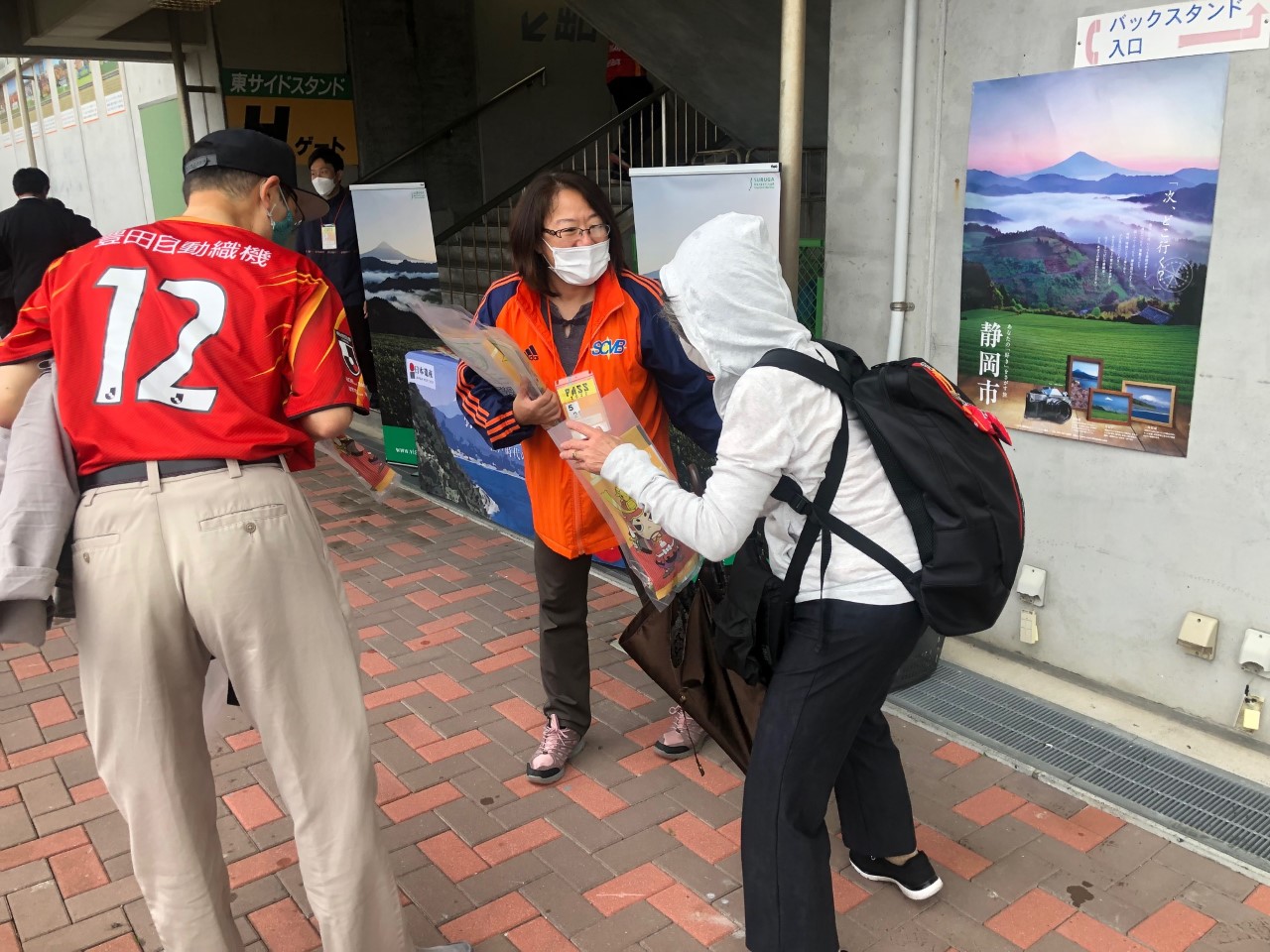 アウェイからお越しのお客様に、静岡の観光案内パンフレットをお渡しいたします。