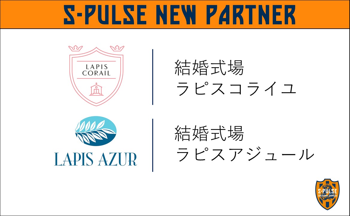 エスパルスは、このたび、結婚式場「ラピスコライユ」、「ラピスアジュール」とクラブパートナー契約を新規にて締結し、2022シーズンから新たにご支援いただくこととなりましたので、下記の通りお知らせいたします。