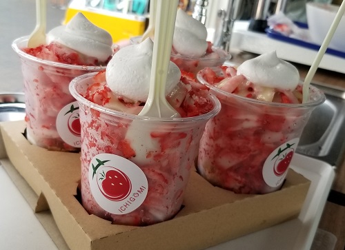 完熟したいちごを冷凍してフワフワに削りバニラ、練乳、ホイップクリームなどでトッピング!いちご屋のいちごをお試しください!