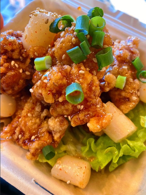 ひまわり自慢の唐揚げと、韓国のお餅トッポギを甘辛ヤンニョムソースを絡めた、タッカンジョンも大変大好評です。是非ともご賞味頂きたく思います。